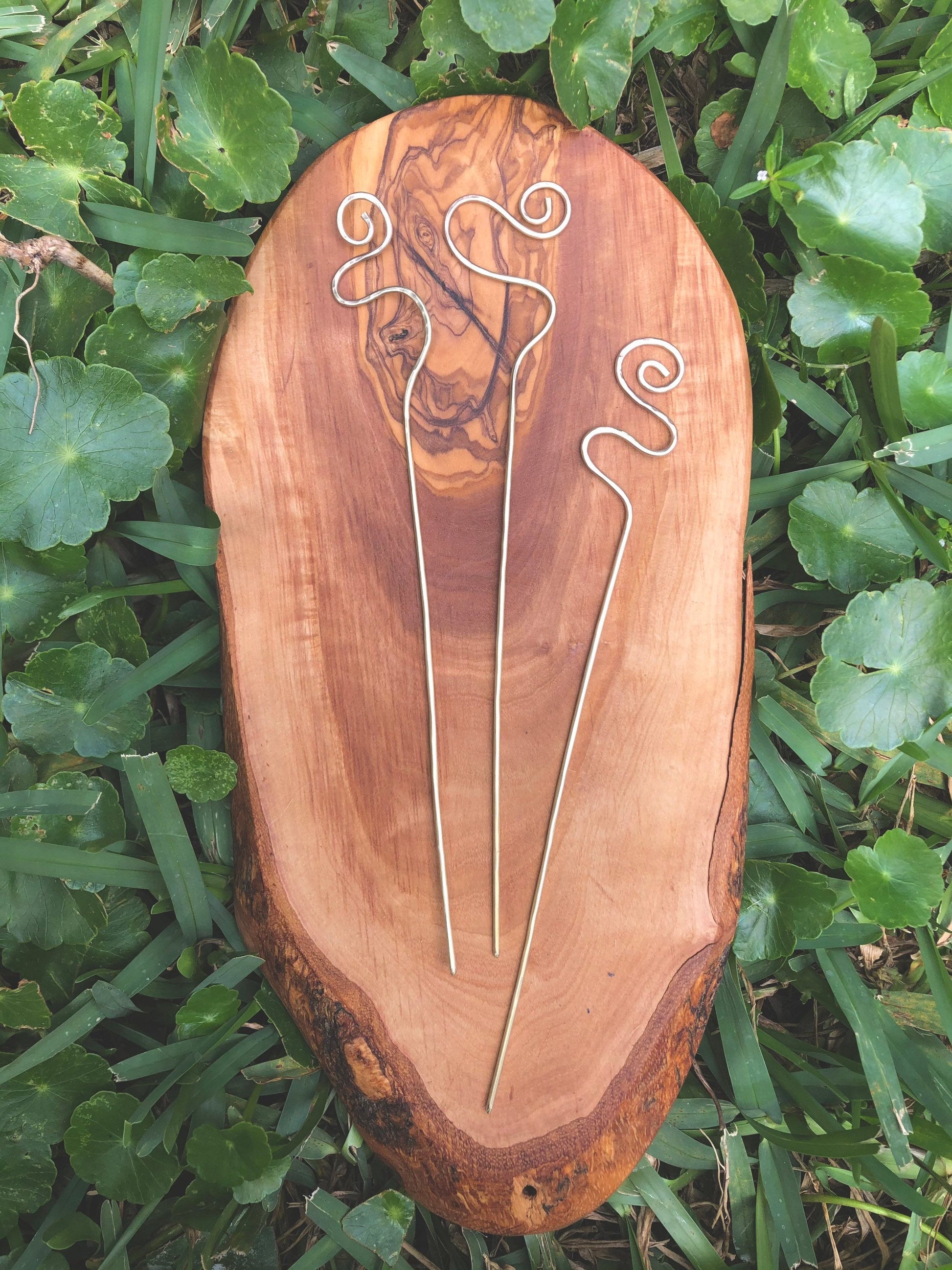 Hand-forged Brass Hair Sticks ~ 7” long ~ shape & length of each stick may vary.