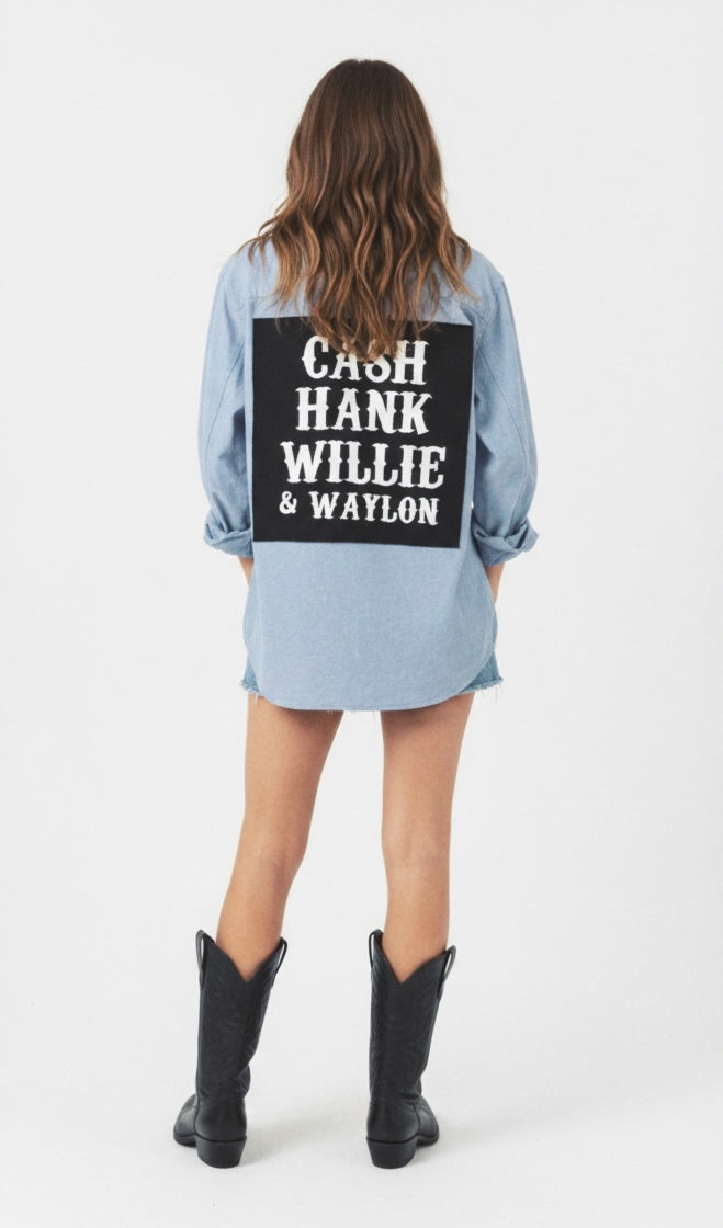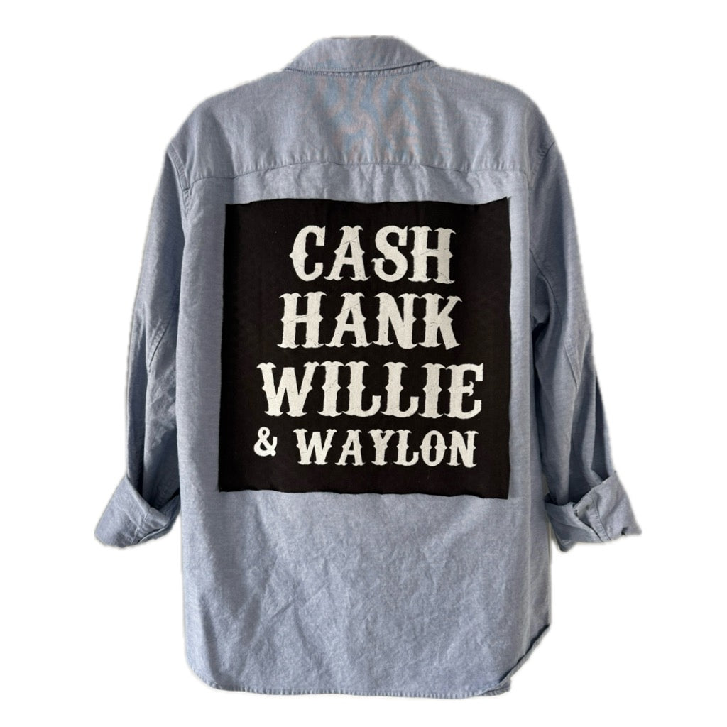 Retro Vintage Thrifted Graphic Upcycled Reworked Denim Chambray Button Down Shirt Shacket