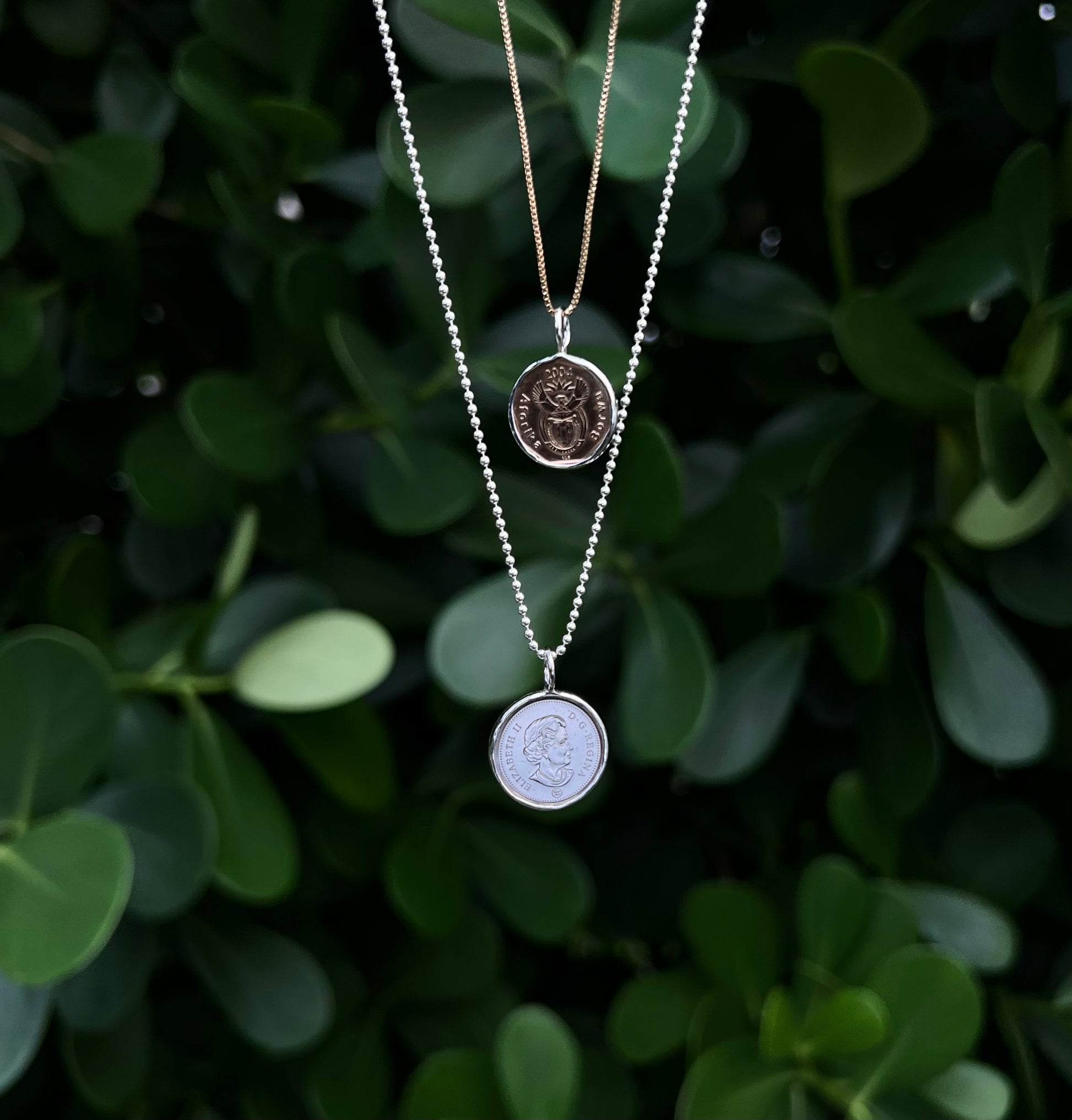 a 10 cent coin from South Africa - set by hand in sterling silver.