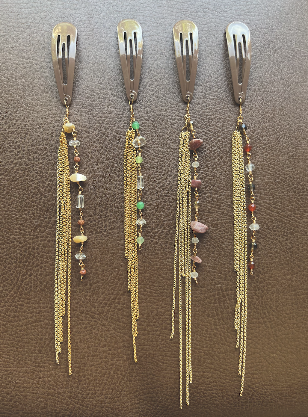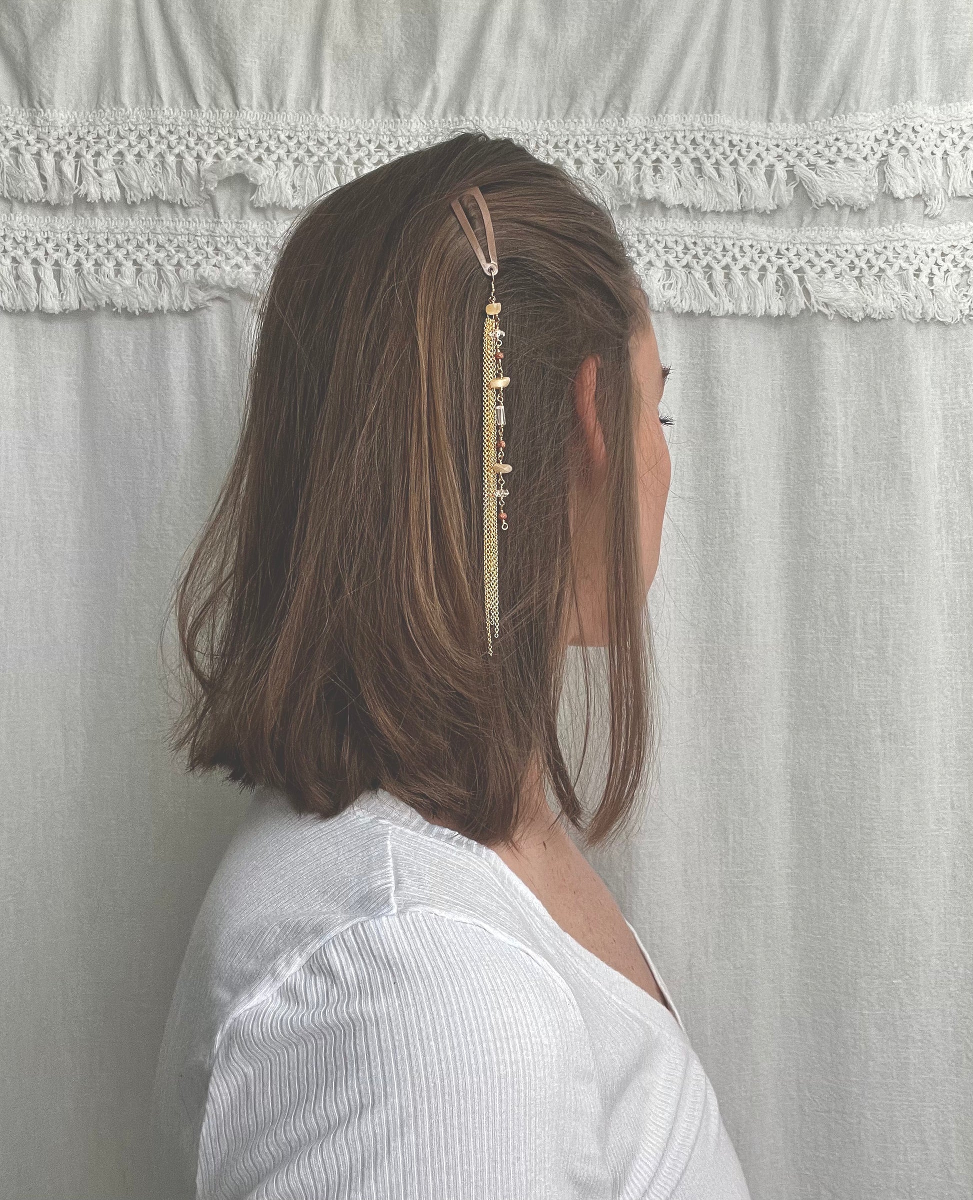 a mix of neutral + gold stone - all elements rosary wrapped with gold plated chain