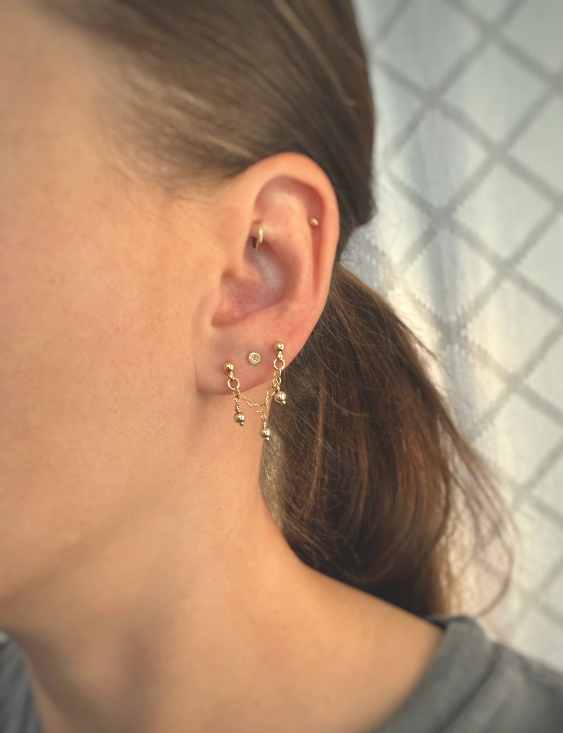 double stud earring with 3 ornament balls + 100% gold filled stud & chain - pictured sith: the solid gold initial studs