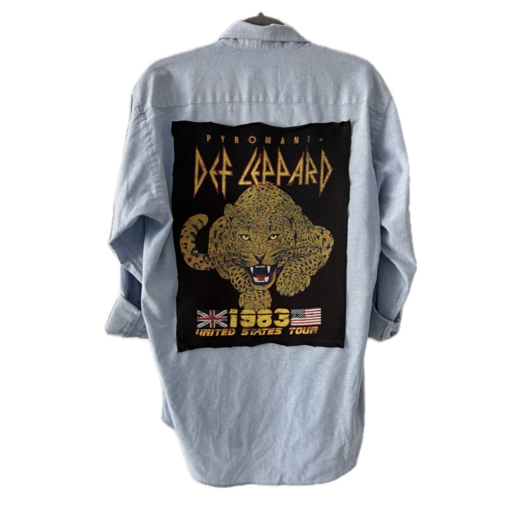 Retro Vintage Thrifted Graphic Upcycled Reworked Denim Chambray Button Down Shirt Shacket