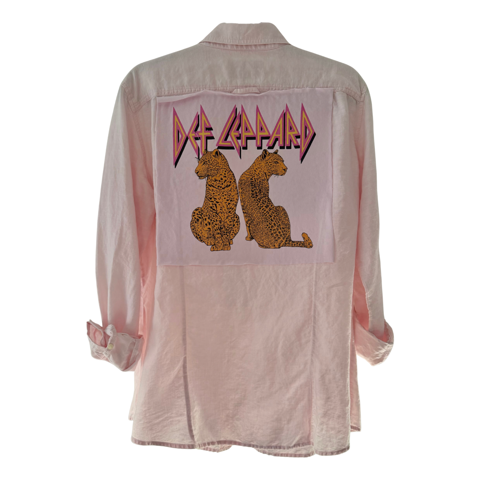 Retro Vintage Thrifted Graphic Upcycled Reworked Pink Cotton Button Down Shirt Shacket