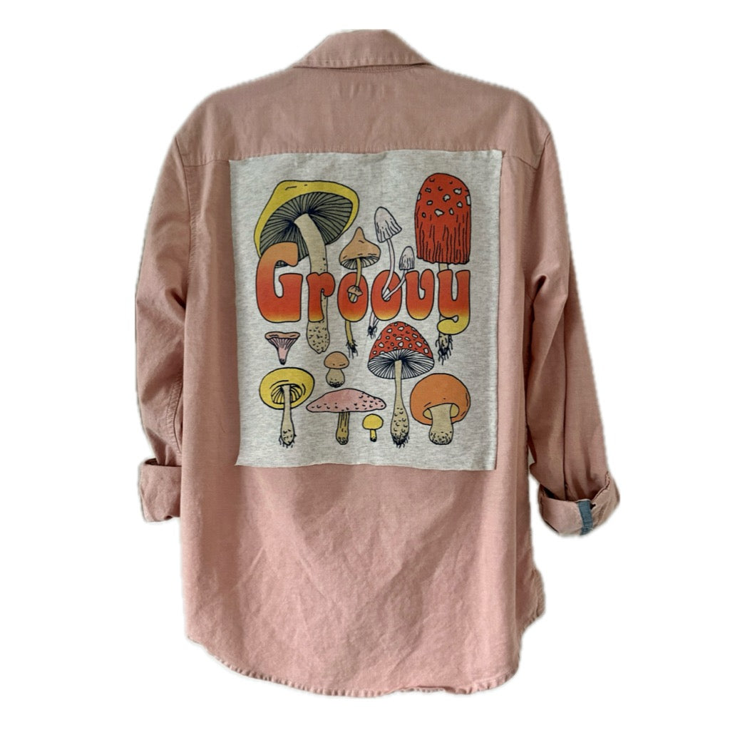 Retro Vintage Thrifted Graphic Upcycled Reworked Denim Chambray Button Down Shirt Shacket