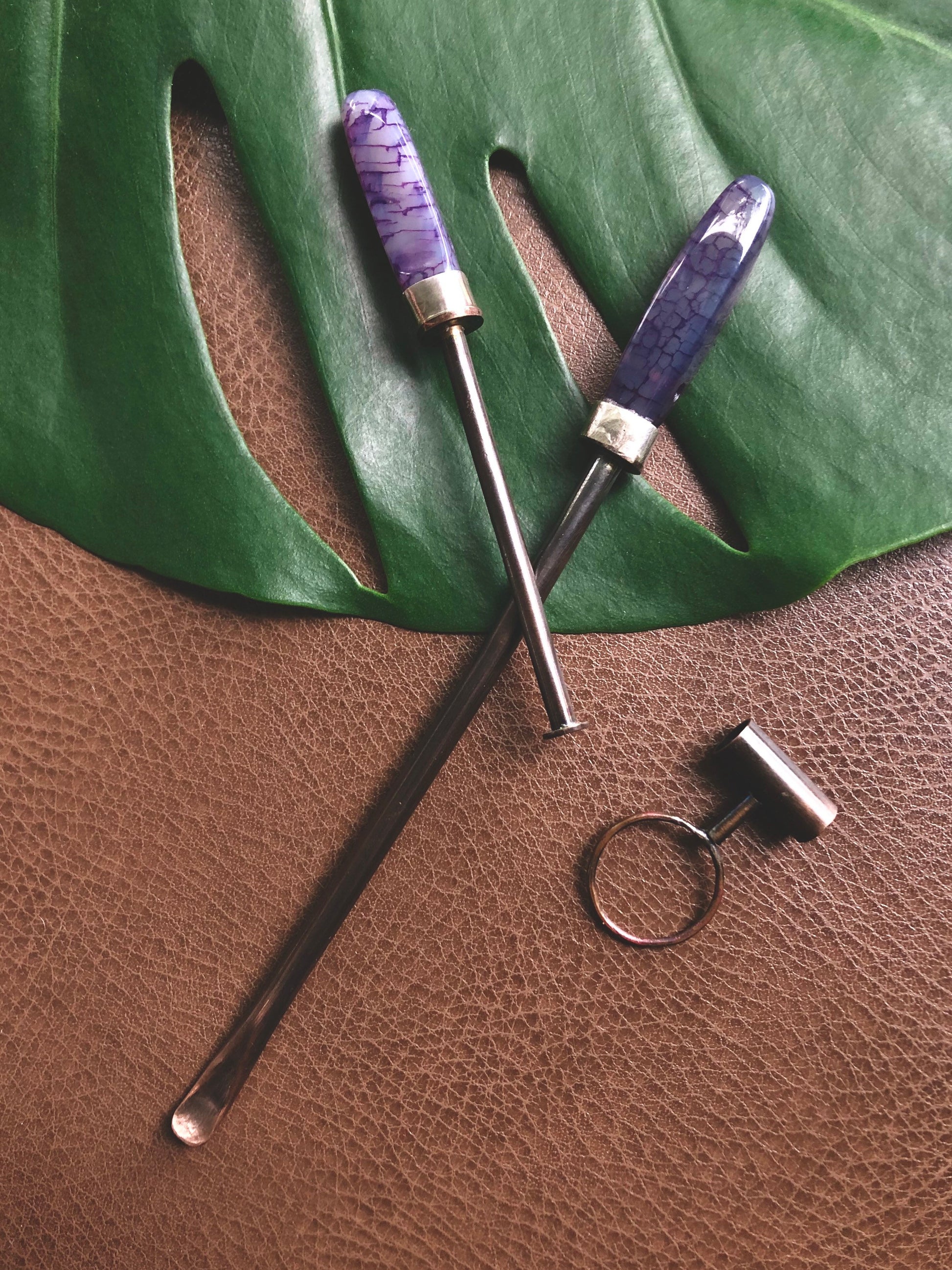 PLEASE NOTE: these tools are made of metal, therefore can get extremely hot. Please do not torch directly - use alcohol to clean.