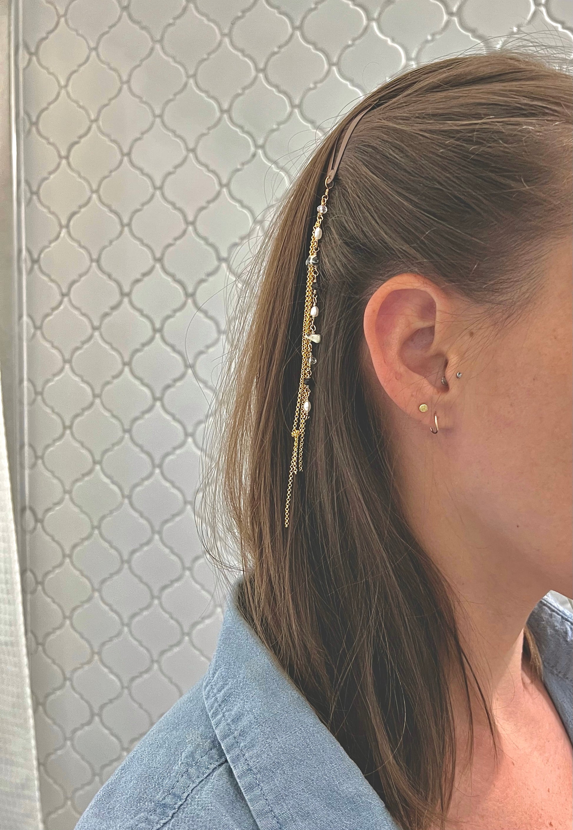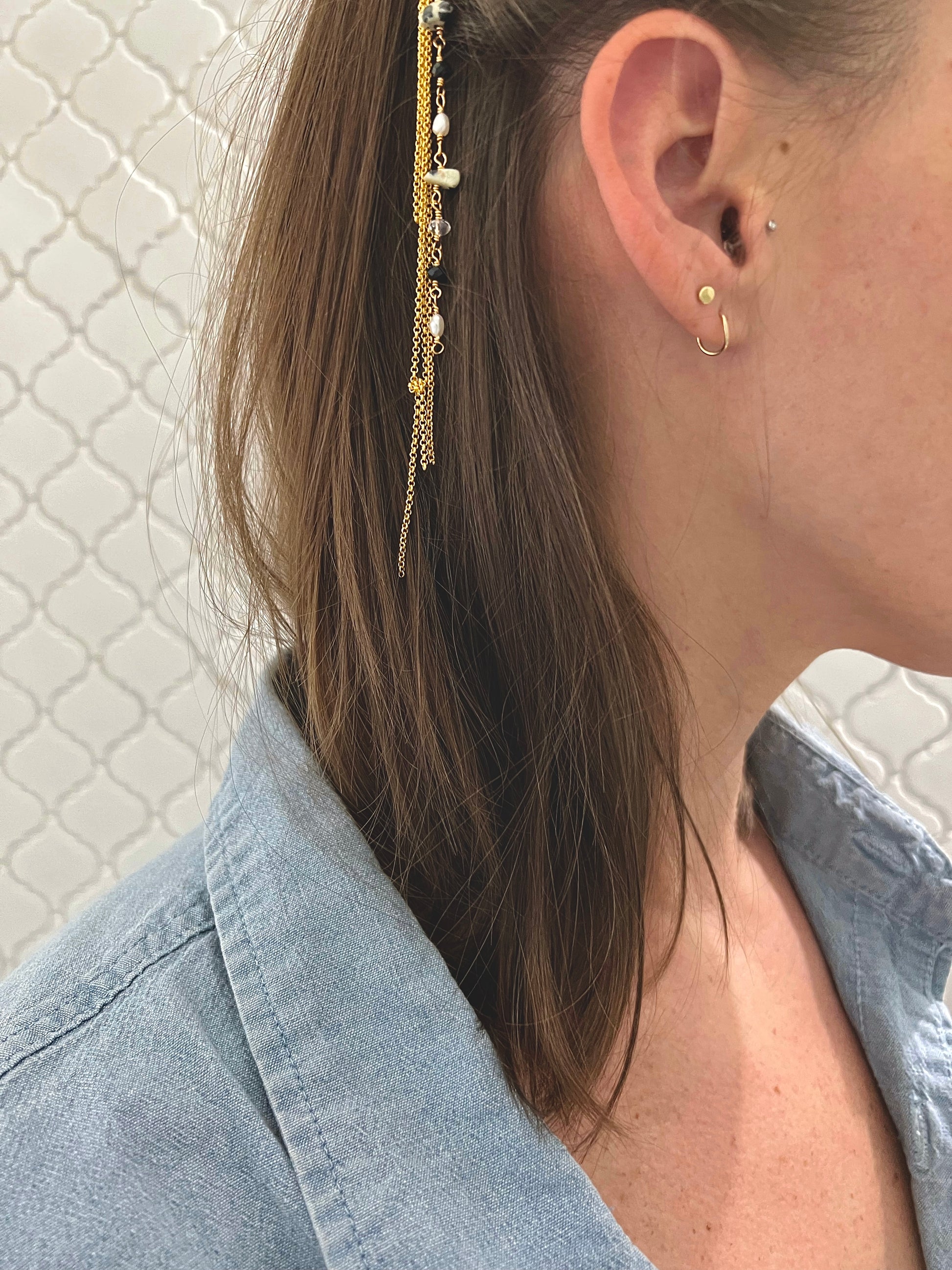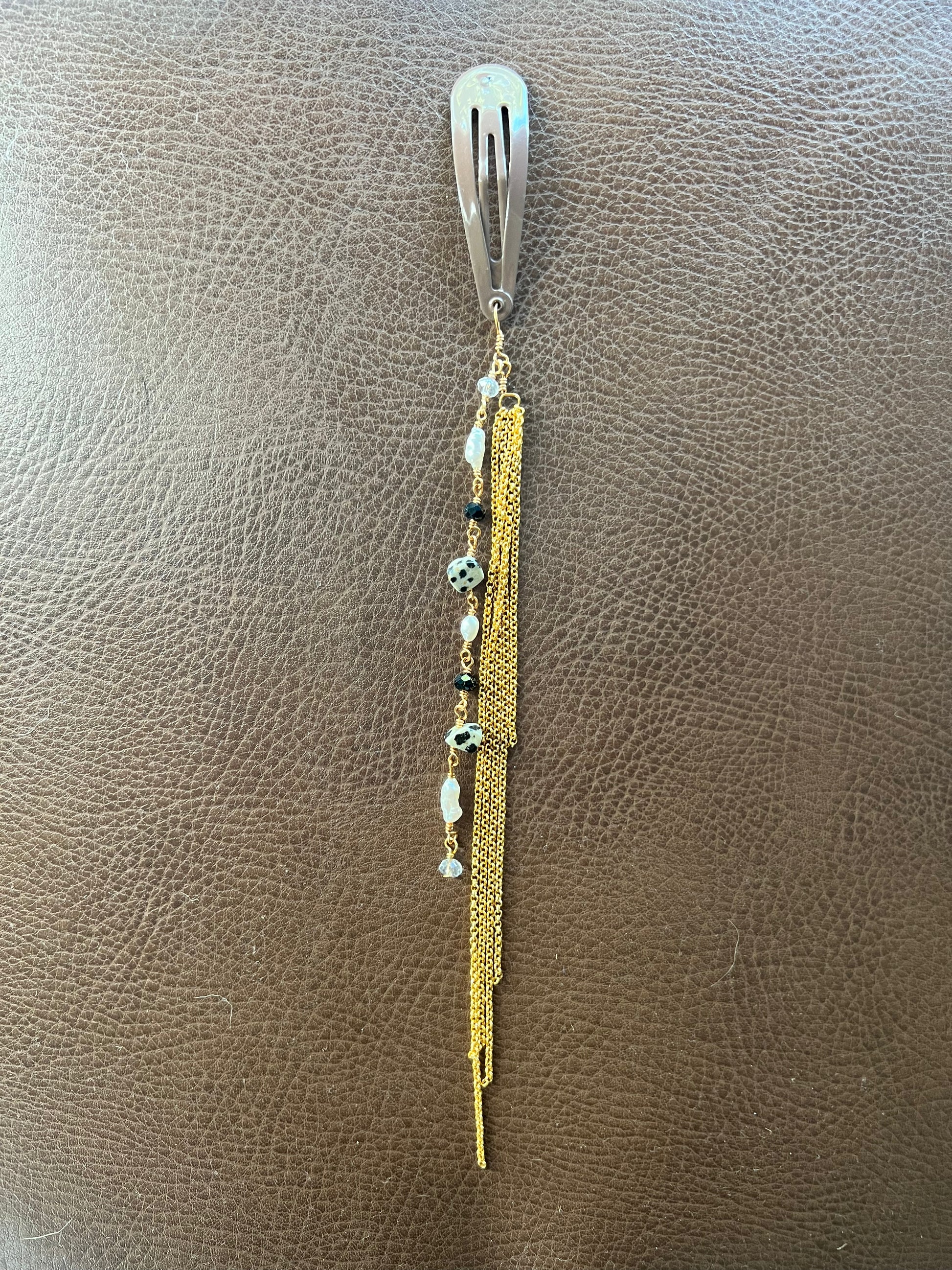a mix of tortise jasper + pearls & crystals - all elements rosary wrapped with gold plated chain