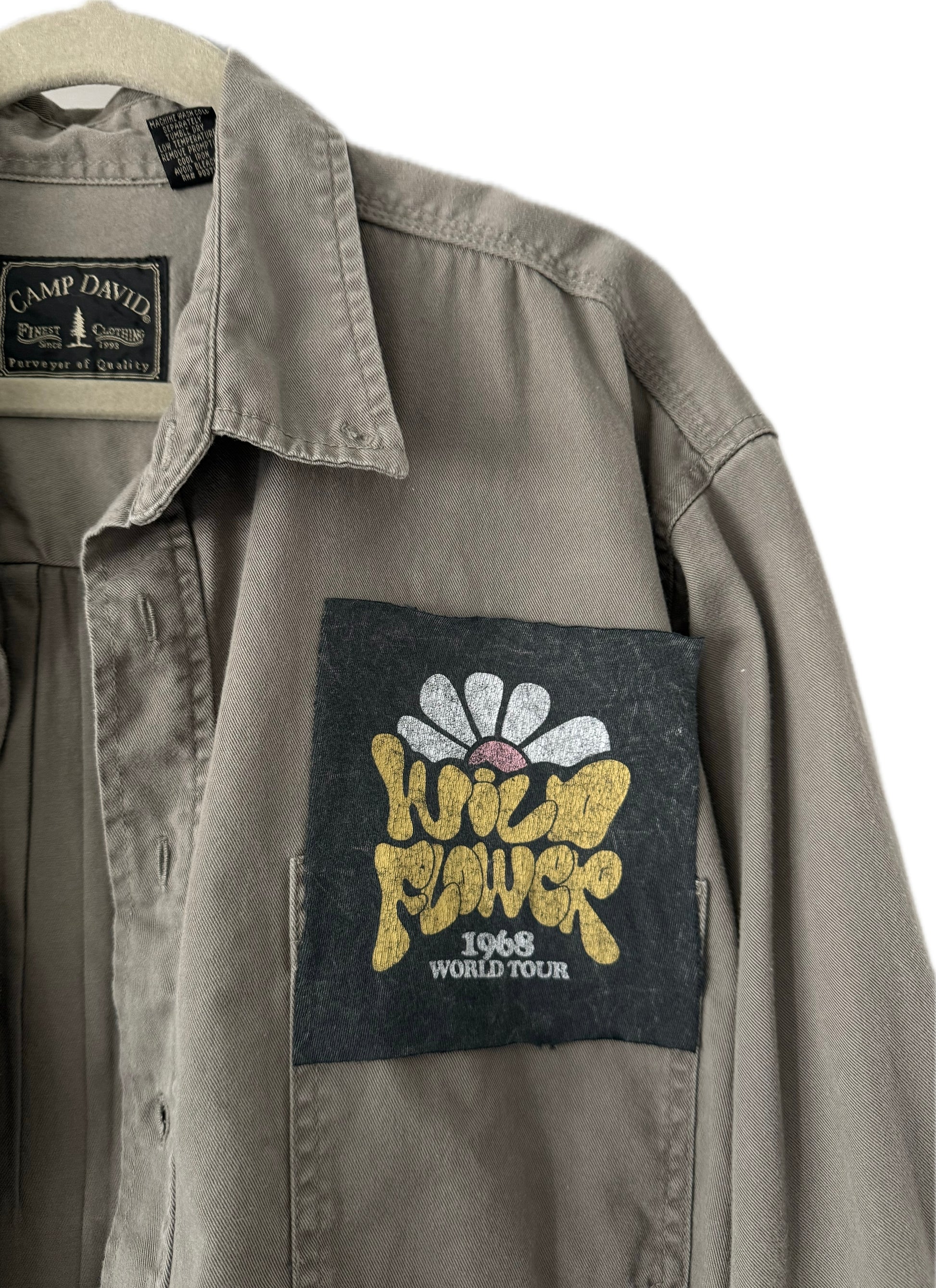 Retro Vintage Thrifted Graphic Upcycled Reworked Denim Chambray Button Down Shirt